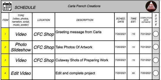 Let's Discuss Your Project and decide on a plan of action, including a list of shots and a shooting schedule.